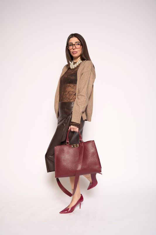 Maglia pizzo marrone