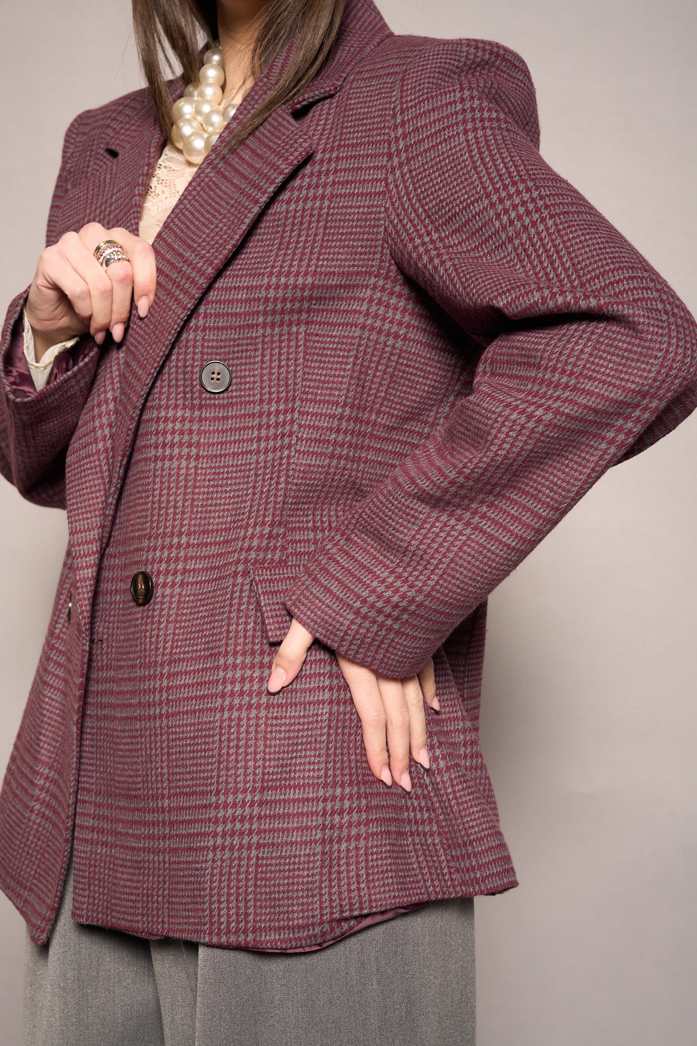 Questa giacca tartan bordeaux è il pezzo che trasforma qualsiasi outfit in un'affermazione di stile. Con il suo motivo fantasia scozzese audace e i colori ricchi, aggiunge personalità e movimento a look casual o più raffinati. Perfetta per chi ama osare con i pattern, è la scelta ideale per creare contrasti interessanti nel tuo guardaroba. Indossala con disinvoltura e lascia che il tartan faccia tutto il lavoro.