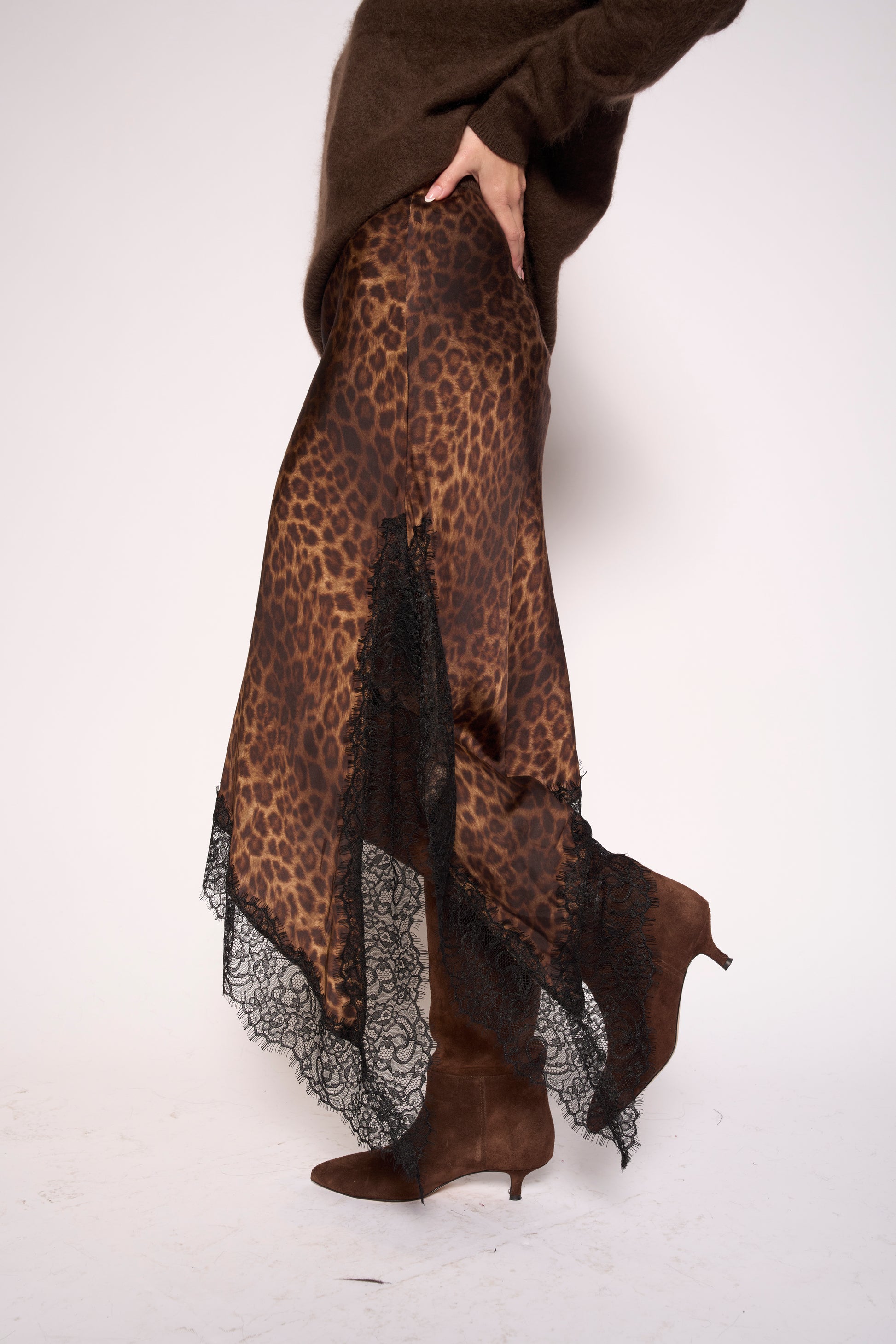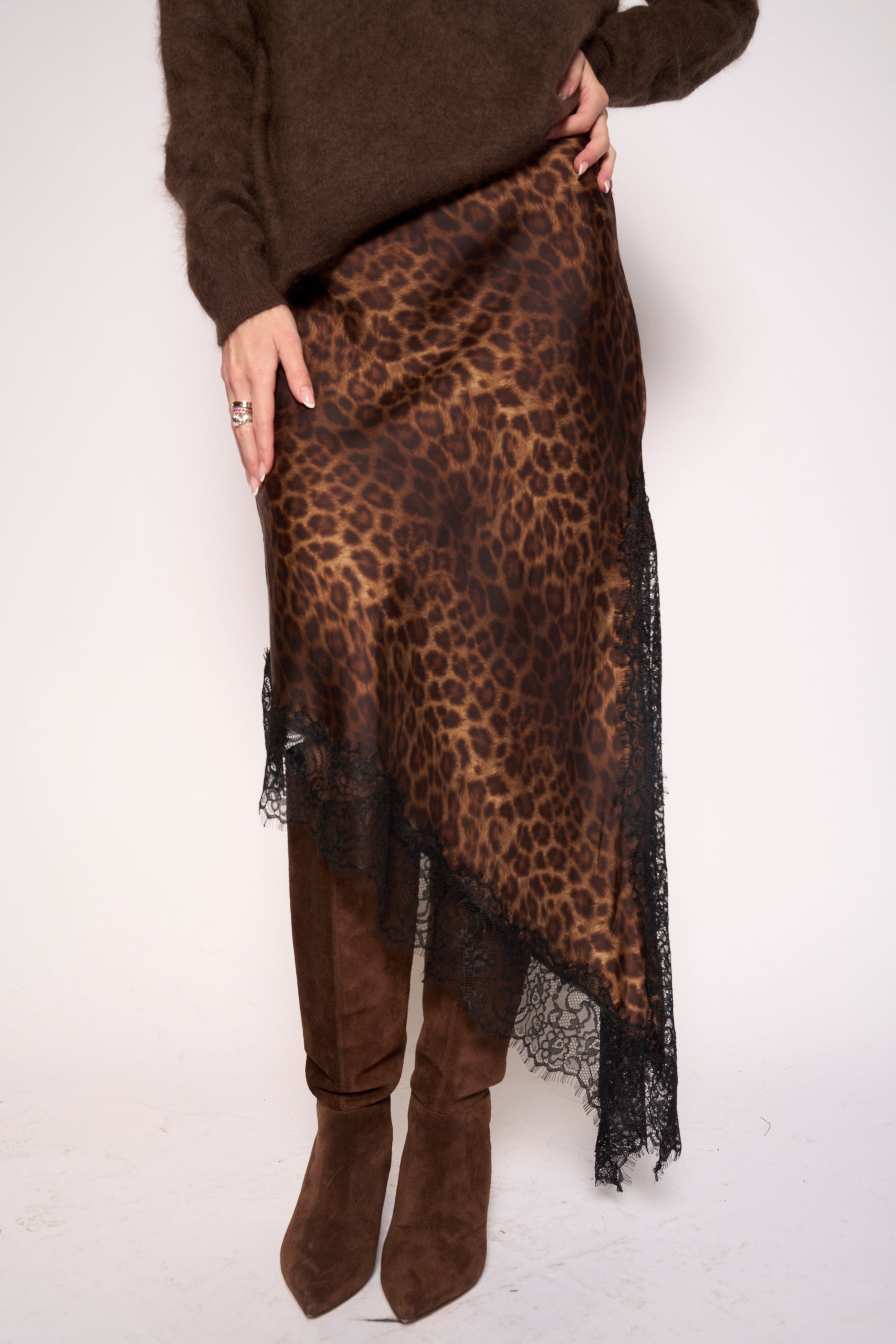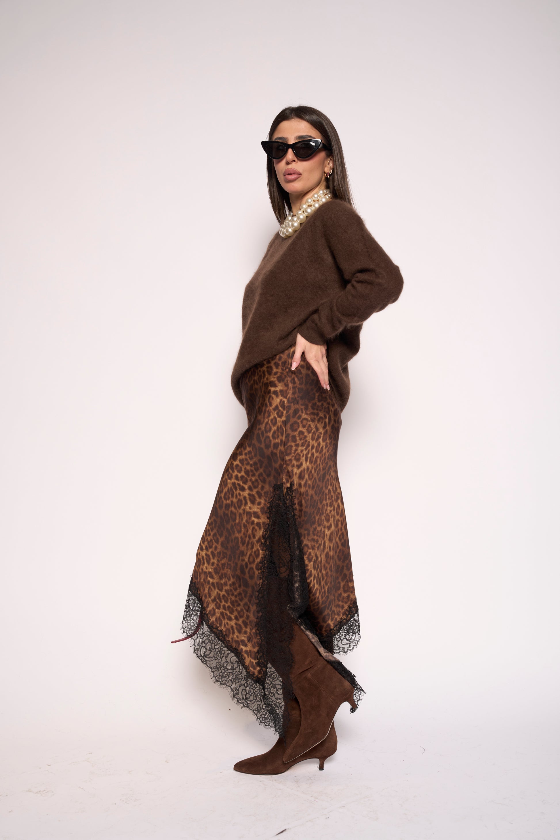 La gonna leopardata Lumina è un capo dal carattere deciso e femminile, perfetto per aggiungere un tocco grintoso e sofisticato al look. Realizzata in tessuto fluido e leggero, segue armoniosamente le linee del corpo offrendo comfort e libertà di movimento.