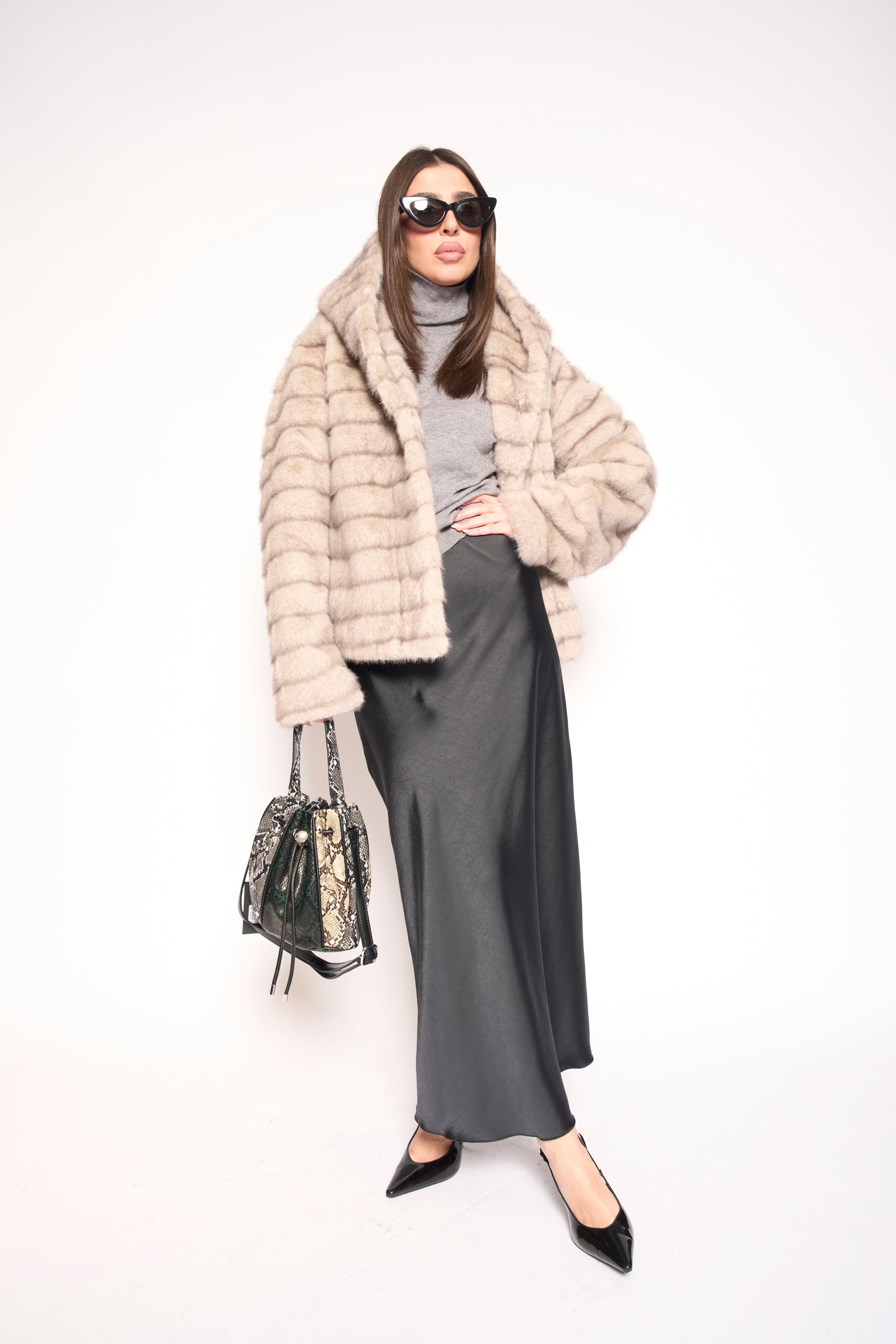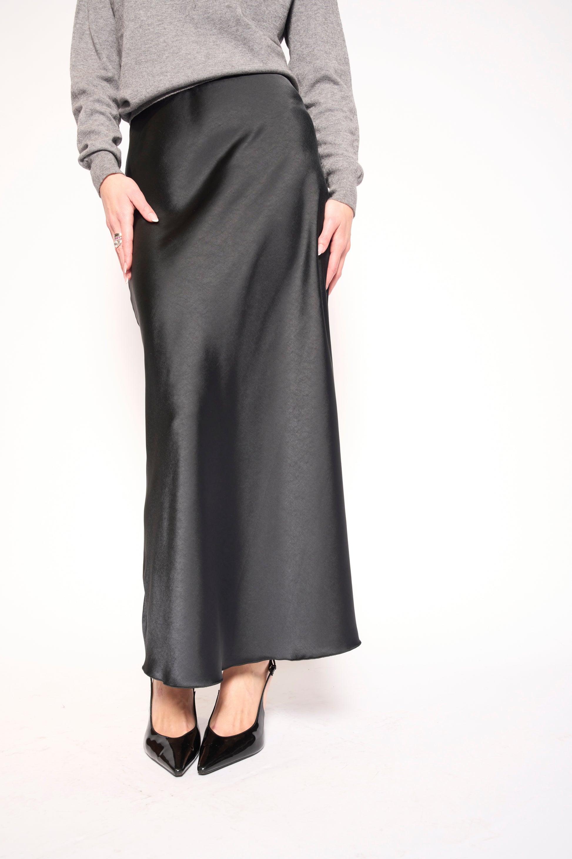 Eleganza fluida che cattura lo sguardo: questa gonna in raso satinato nero è il pezzo che trasforma qualsiasi outfit in un momento di pura sofisticazione. La texture setosa accarezza il movimento, creando un effetto ipnotizzante ad ogni passo. Perfetta per serate speciali o per chi vuole aggiungere un tocco di lusso al quotidiano. Un classico che non passa mai di moda, con quel fascino misterioso che solo il nero sa regalare.