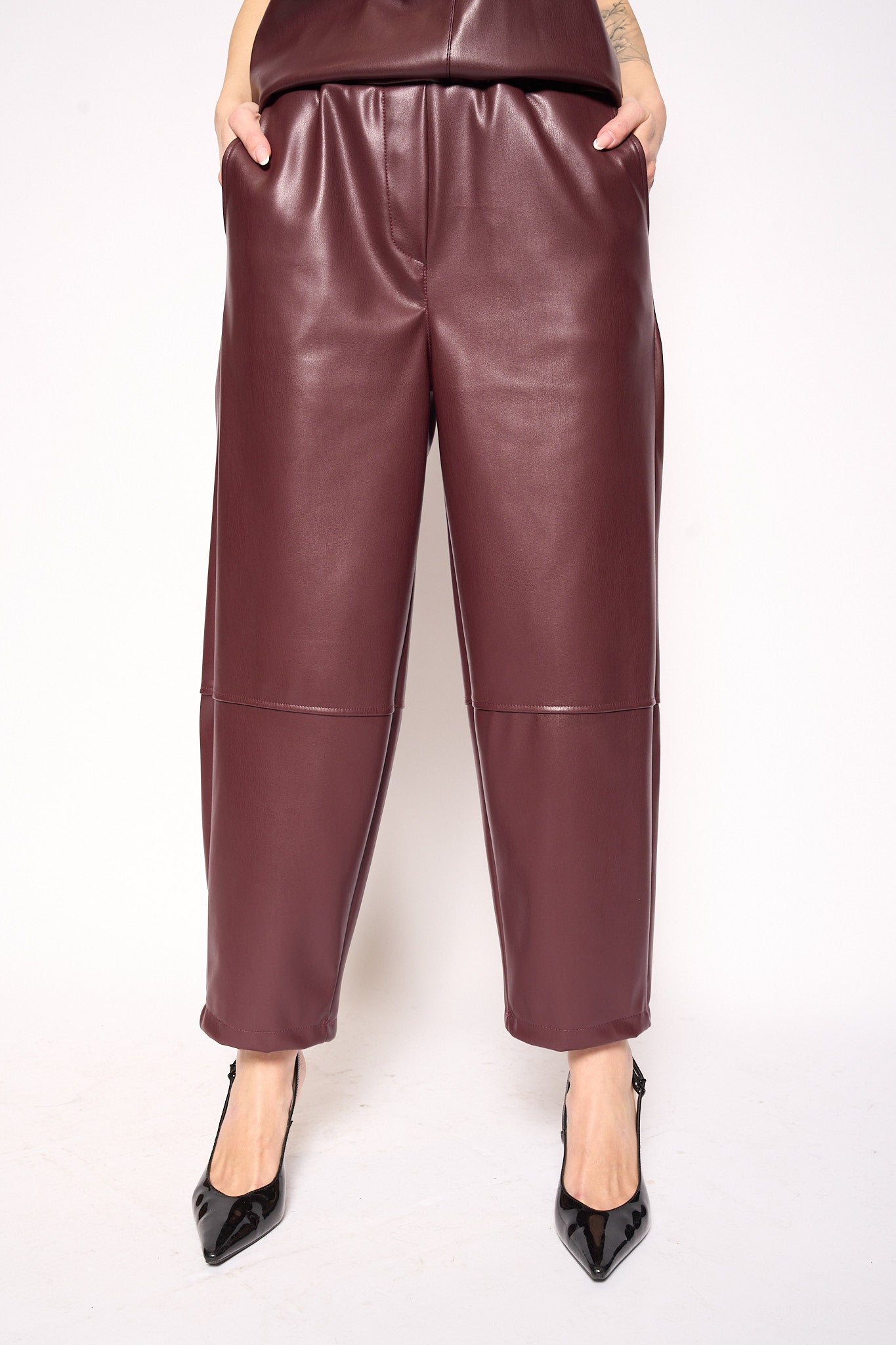 Pantalone eco pelle bordeaux