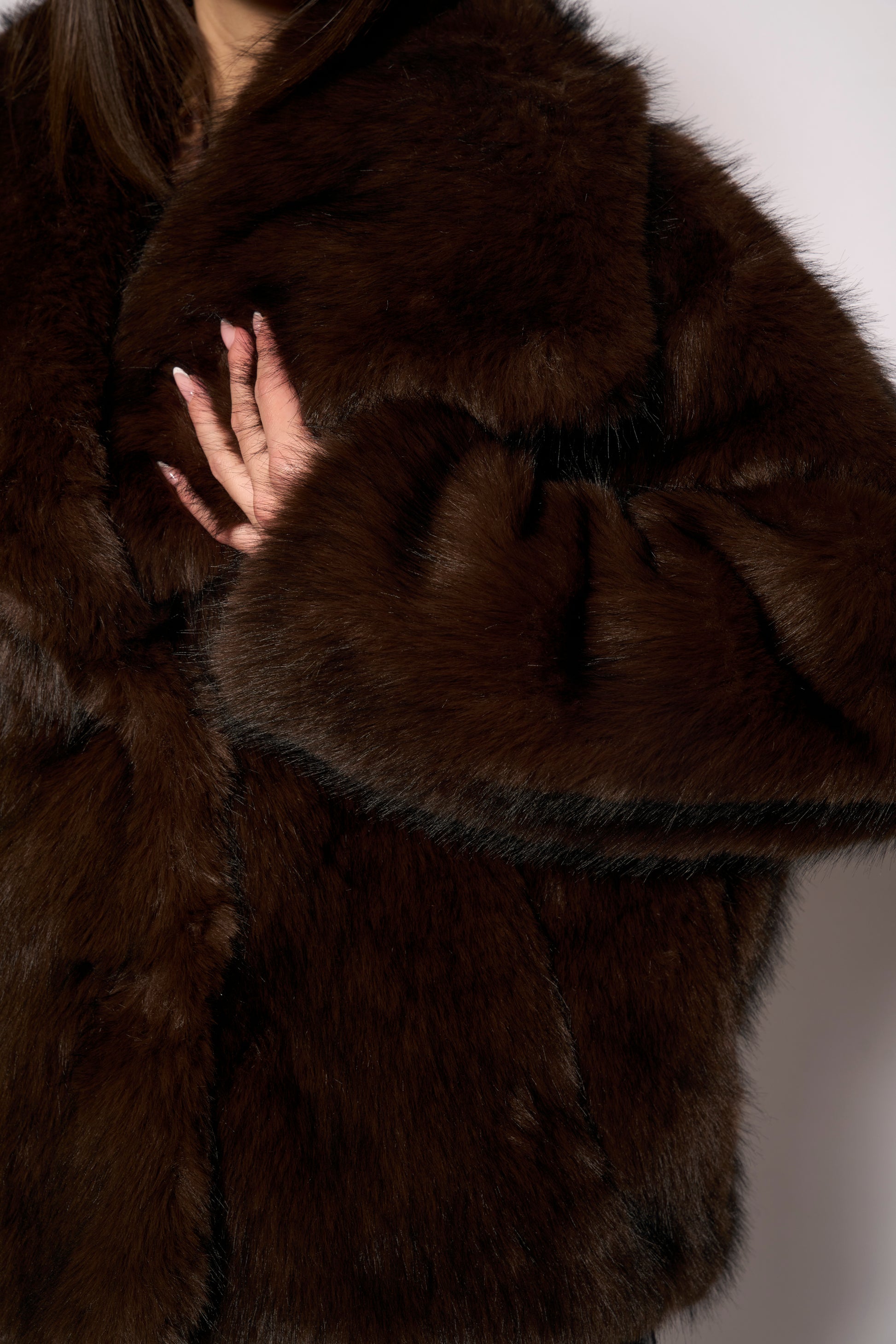 Avvolgiti in morbidezza con questa pelliccia eco marrone dal collo avvolgente. Perfetta per aggiungere un tocco di calore e stile giocoso al tuo look invernale, combina etica e fashion in un abbraccio irresistibile. Scegli il comfort senza rinunciare alla tua personalità!