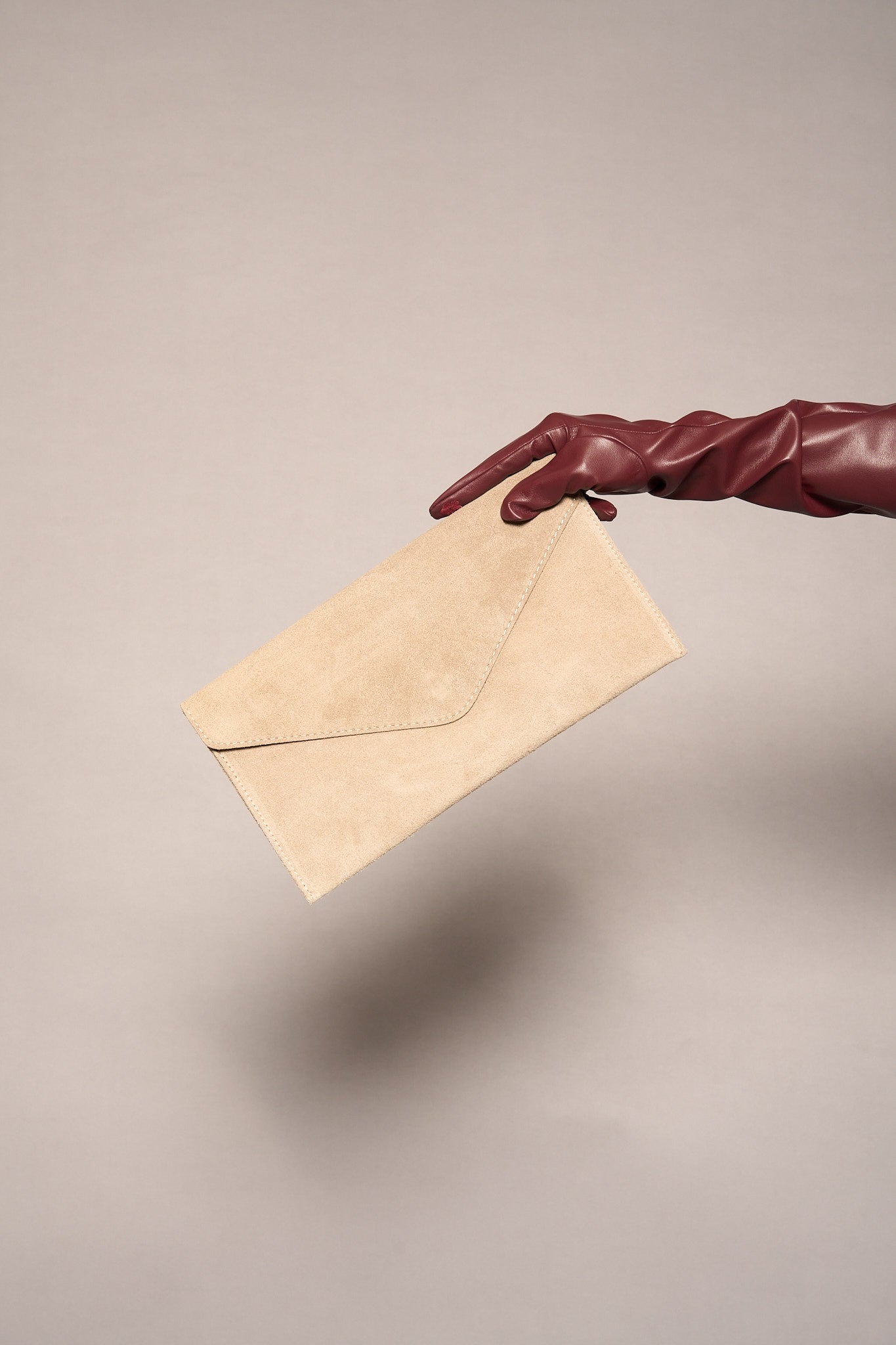 Morbidezza e stile si incontrano in questa pochette in camoscio cammello, il tuo nuovo accessorio indispensabile per un'eleganza senza sforzo. Realizzata in camoscio lussuosamente morbido, questa clutch compatta si infilza perfettamente nella tua borsa quotidiana o brilla da sola come compagna serale chic. Il caldo tono cammello si abbina magnificamente a qualsiasi outfit, mentre la texture vellutata ti invita a toccarla e ammirarla. Che tu stia organizzando gli essenziali o facendo un'affermazione di moda, questa pochette porta un tocco di lusso sobrio a ogni momento. Semplice, sofisticata e assolutamente irresistibile.